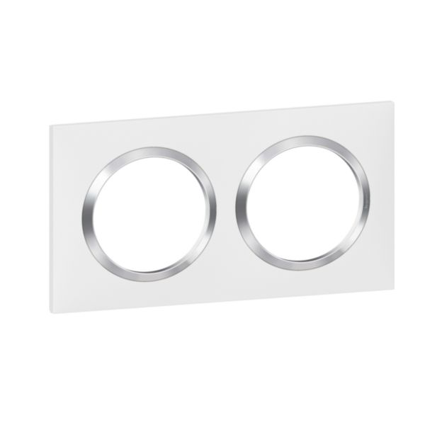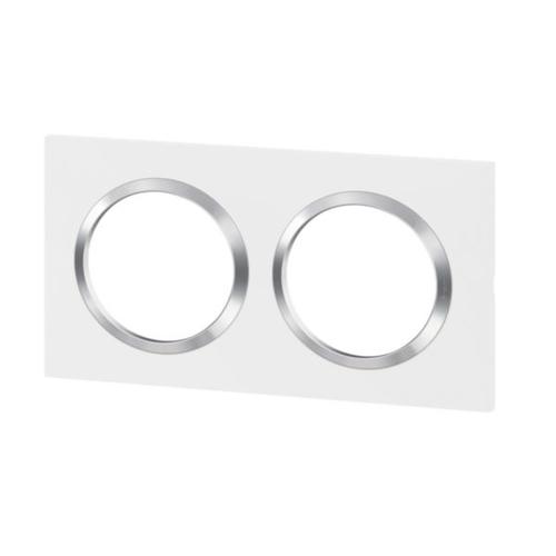 LEGRAND Dooxie Plaque carrée 2 postes finition blanc avec bague effet chrome – 600842